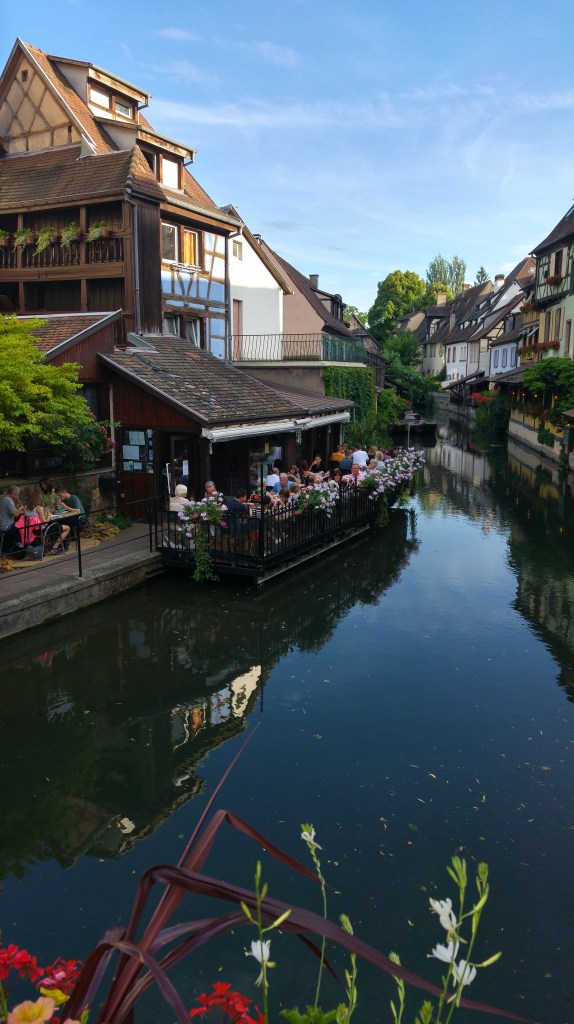 לקח לנו זמן להסביר לה שהגענו לצרפת ויש מאכלים אחרים ומיוחדים. פסטה לא מצאנו והיא התפשרה על הפיצה הדקה המקומית ואני טעמתי לי קיש לורן !. בינתיים התחלנו להכיר את מרכז העיר העתיקה, התפעלנו מהבניינים הישנים בסגנון האלזסי עם קורות העץ והאדניות על החלונות, מהצבעוניות והיופי וניסינו לצלם מכל זווית אפשרית את הנהר והתעלות לצידו, זה שבגללו קוראים לעיר "ונציה הקטנה" (la Petite Venise) במקום יש גם רכבת תיירים לילדים העושה סבוב בעיר.