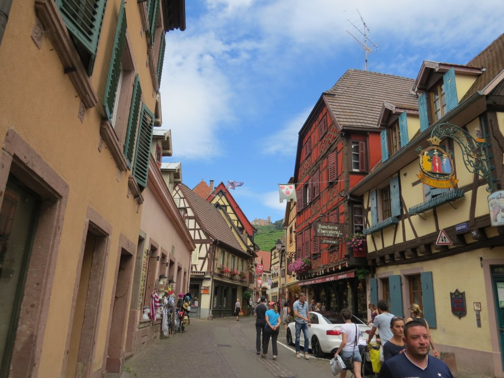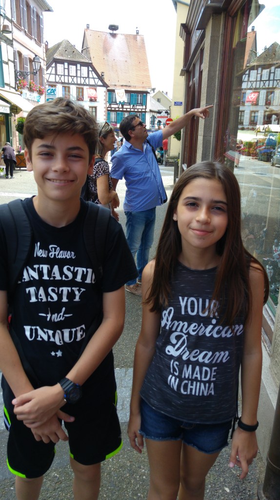 בתכנון היום השוק בריבולה ושטרסבורג. בפועל: בדרך לריבולה – RIBEAUVILLE מצאנו את חנות דקתלון המפורסמת (הערה : כשעוד לא נפתחו סניפים בארץ). נכנסנו "רק לכמה דקות" ויצאנו לאחר שעה ומשהו עם כמה פריטים נחמדים ולא יקרים. המשכנו לריבולה עיירה מקסימה, הרגשתי כמו באתר של סרט ימי הביניים, או בתפאורה של אגדות ילדים כשברקע הטירה שבהרים. השוק קטן עם גבינות, נקניקים, ירקות. הילדים גילו את הפטיסרי המקומי ומעתה לכל עיירה שהגענו ישר הלכנו לפטיסרי או בולנזרי הקרוב, כל אחד בחר לו משהו לאכול וכך יכולנו להסתובב בשקט כשעה שעתיים.