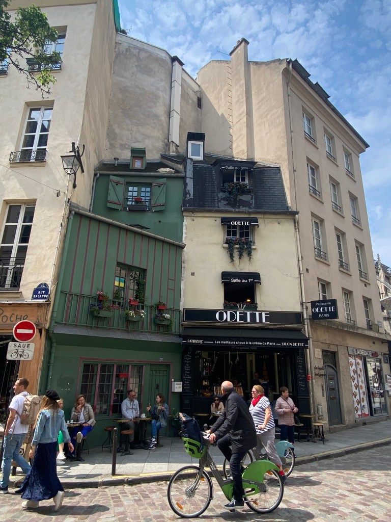 הבית השני הקטן ביותר בפריז עם ODETTE, הפחזניות הטעימות ולידו הסמטה הצרה ביותר, מול כנסיית Saint Severin העתיקה.