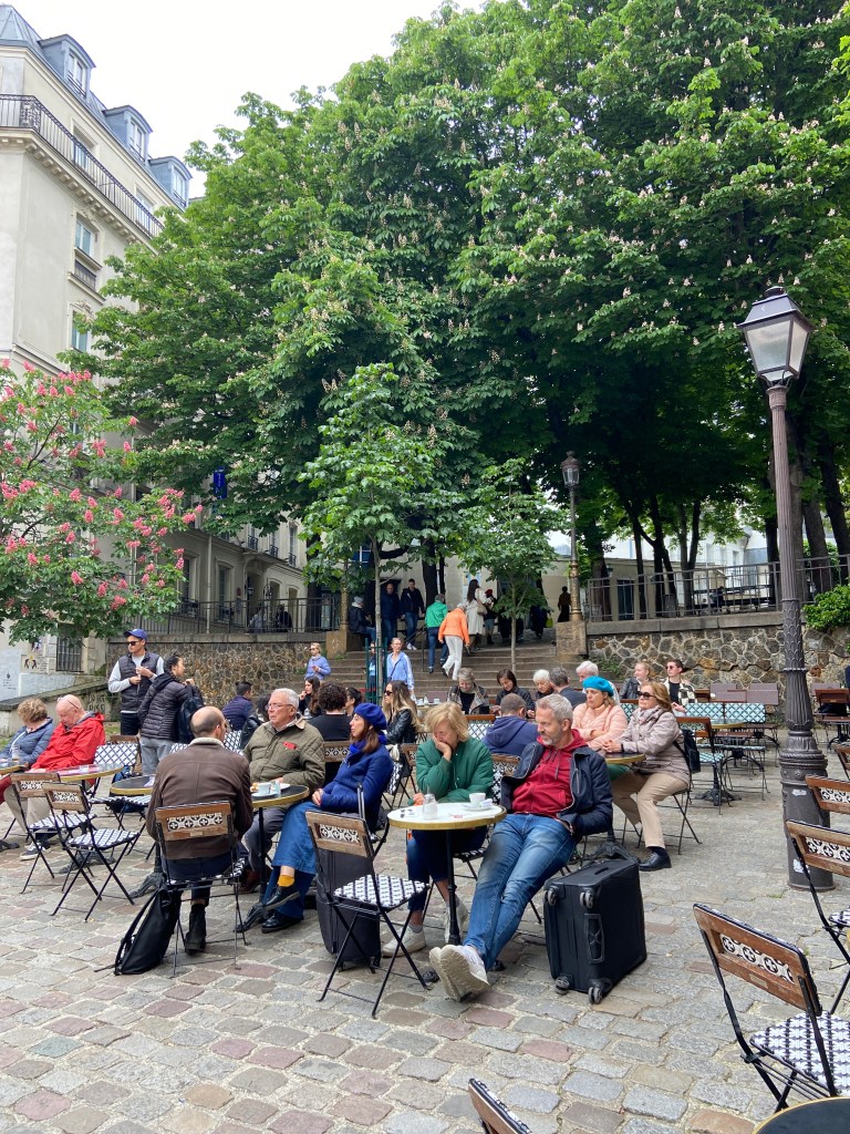 נפרדנו מהמדריך ממש ליד כנסיית הסקרקר ומשם המשכנו לרחבה של הכנסייה עם הנוף לכל פריז. על אף שהיה מעונן, בקושי מצאנו פיסת מקום לצלם. המשכנו לרחבת האומנים -ככר טרטרה והסמטאות הציוריות שלידה.