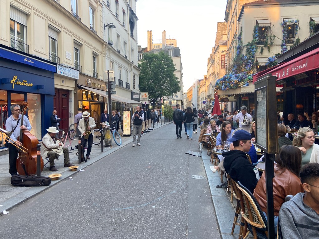 את הקפה שלנו של אחה"צ שתינו ברחוב הקרוב למלון שלנו RUE DE BUCI, יום ראשון והכל מלא, אוירה נהדרת של פריז !