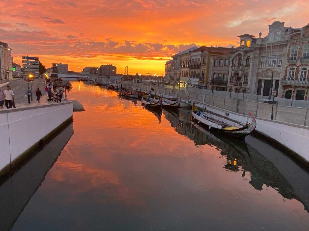 לאביירו הגענו לאחר שעתיים נסיעה. המלון שבחרתי ממש בלב העיירה Hotel Aveiro Palace, מלון 4* קלאסי במיקום מעולה, למרות שהיינו על הרחוב הראשי לא שמענו כלום. הנחנו את המזוודות ויצאנו להכיר את העיר בטרם תרד החשיכה. אביירו היתה הצלחה מסחררת, כולנו התחברנו אל הסמטאות, הקניון החנויות, תעלות המים עם הסירות וחיי הלילה השוקקים. אפילו לשוק הדגים הגענו כשבערב הוא הפך להיות בר עם מוסיקה ודי ג'י. גם זכינו בשקיעה מהממת !